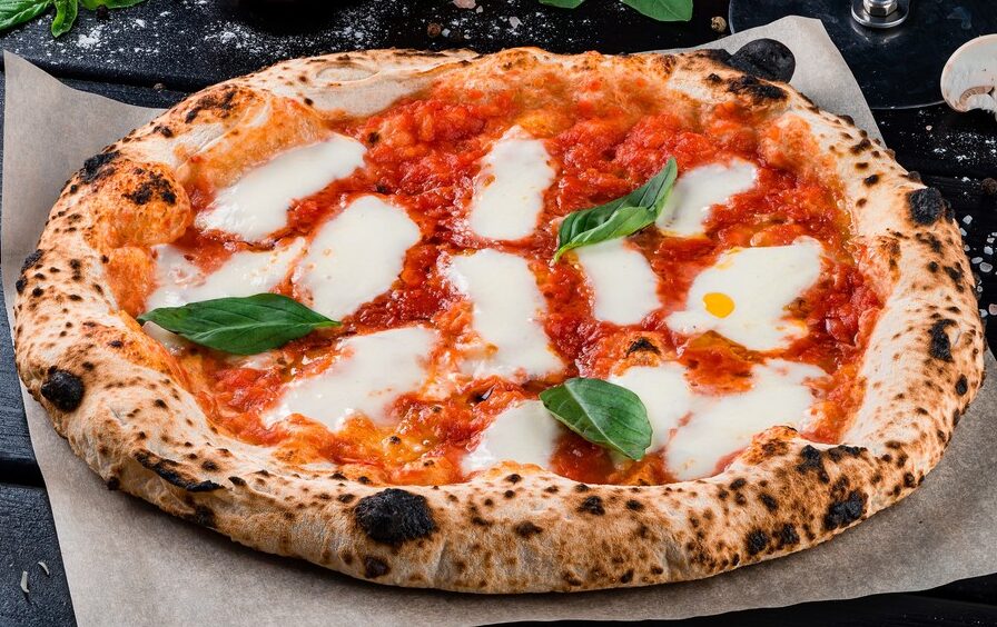 Pizza grande con masa artesanal, salsa de tomate casera, abundante queso mozzarella fundido y un toque de albahaca fresca para un sabor clásico e irresistible.